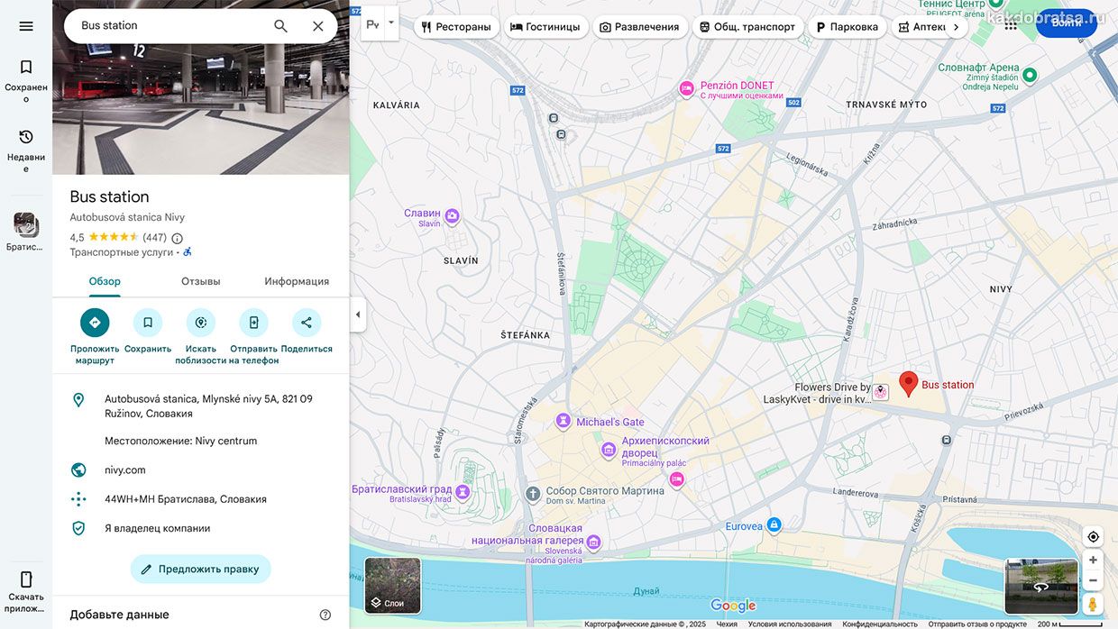 Автовокзал Братислава Млинске Нивы где находится точка на карте
