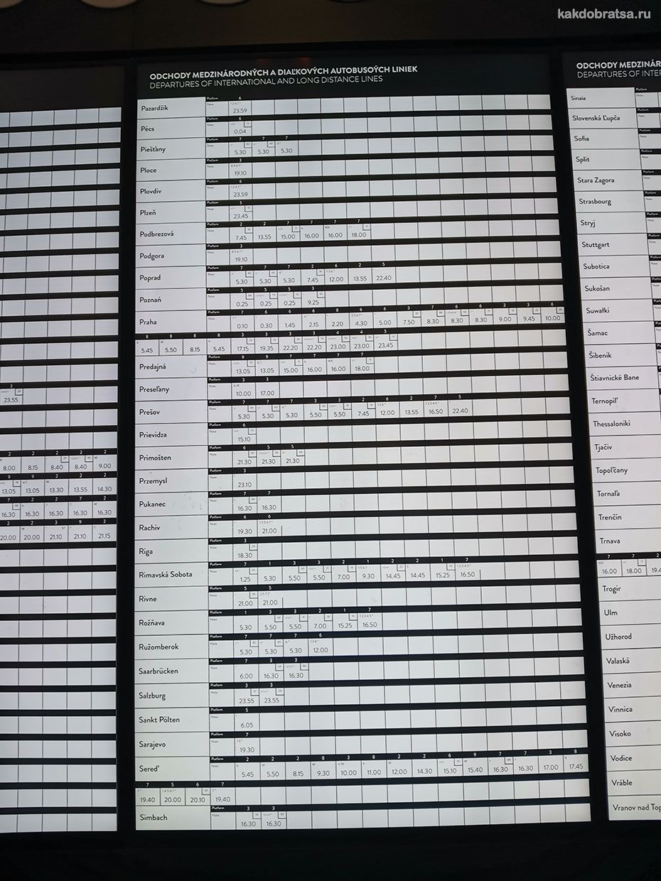 • Адрес автовокзала: Autobusová stanica, Mlynské nivy 5A, 821 09 Ružinov, Slovakia