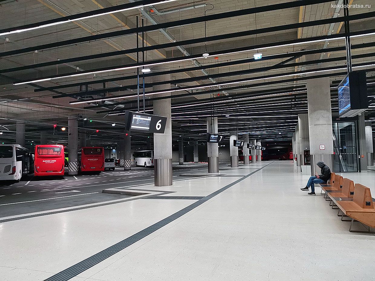 Автовокзал Братиславы находится на подземной парковке торгового центра. Тут сделаны пронумерованные платформы, на которых установлены лавочки и электронное табло. На табло выводится информация о рейсе и его маршруте.