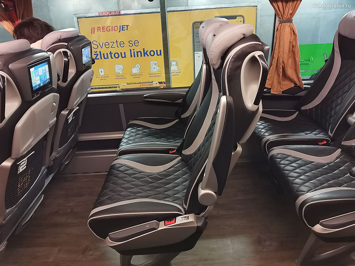 Кстати, для поездки из Праги в Братиславу я всегда выбираю двухэтажный автобус с действительно удобными сиденьями и компоновкой салона 2+1.