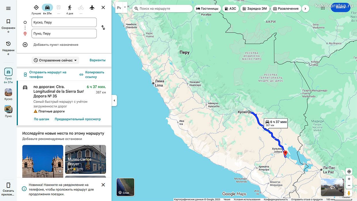 - На автобусе. Очень популярный маршрут — автобус из Куско до Пуно. Многие туристы едут на ночных автобусах, чтобы сэкономить время и акклиматизироваться на высоте. Время в пути 6-7 часов. Билеты стоят примерно $11-20, приобрести их можно через ресурс 12GO.