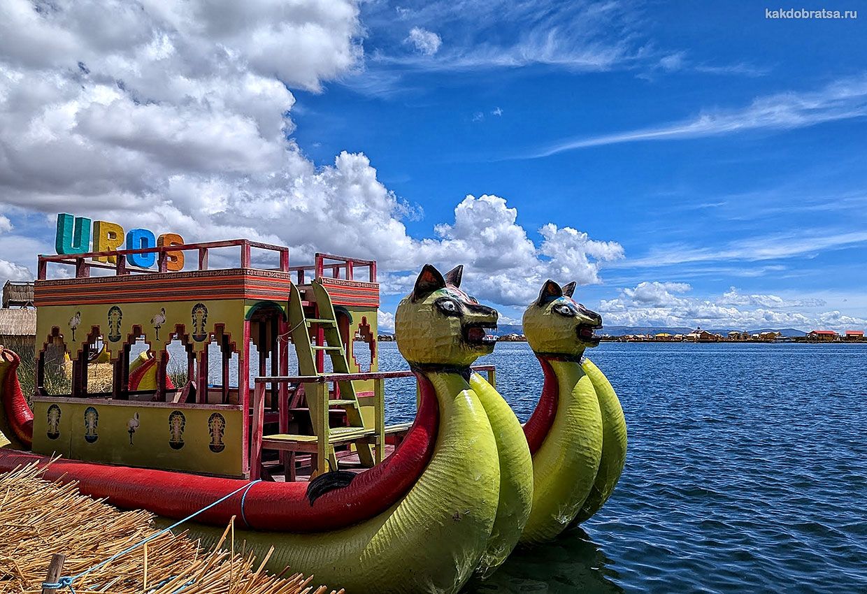 - Популярный маршрут — плавание на моторной лодке или скоростном судне до плавающих островов Урос, затем — до острова Такиле. (GetYourGuide)